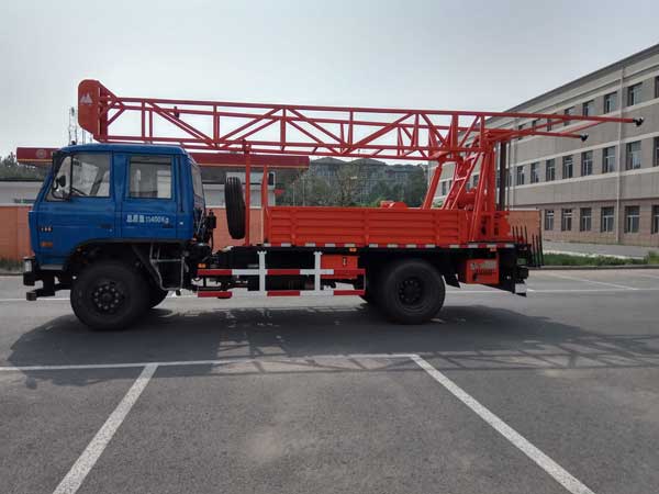 STC5110TZJDPP100-5C型钻机车是一种改装在汽车底盘上的上的长行程油压给进(选装短行程油缸)、液压移机、副卷扬装置的转盘式车载钻孔设备。(车辆采用东风EQ1141ND5DJ二类底盘,国Ⅴ排放标准、柴油两驱、八档法士特变速箱,东风康明斯发动机、发动机功率140kw。)