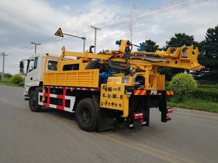 STC5130TZJ500型钻机车是一种装在东风牌EQ2180GD5DJ(四驱)型符合国Ⅴ排放标准的柴油汽车底盘上的全液压车载钻孔设备。采用单独康明斯柴油机动力,解决了车辆发生故障之后不能提钻的弊端。