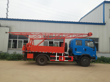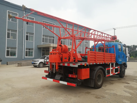 STC5092TZJDPP100-3G型钻机车是一种装在东风牌DFV2110GD5DJ(四驱)型符合国Ⅴ排放标准的柴油车底盘上的油压给进的转盘式车载钻孔设备。